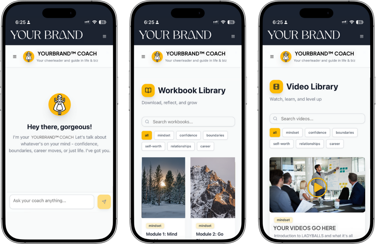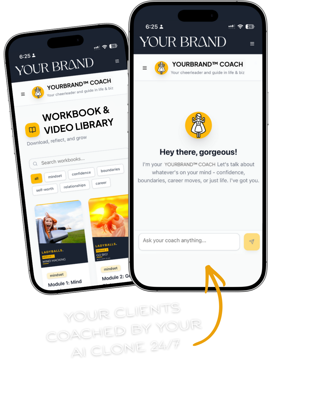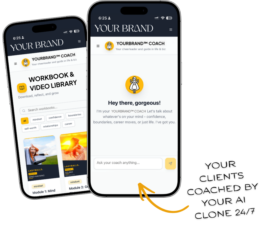 Clone your exact coaching style and methods to serve your clients 24/7 from your very own app, while you sip margaritas on a beach.